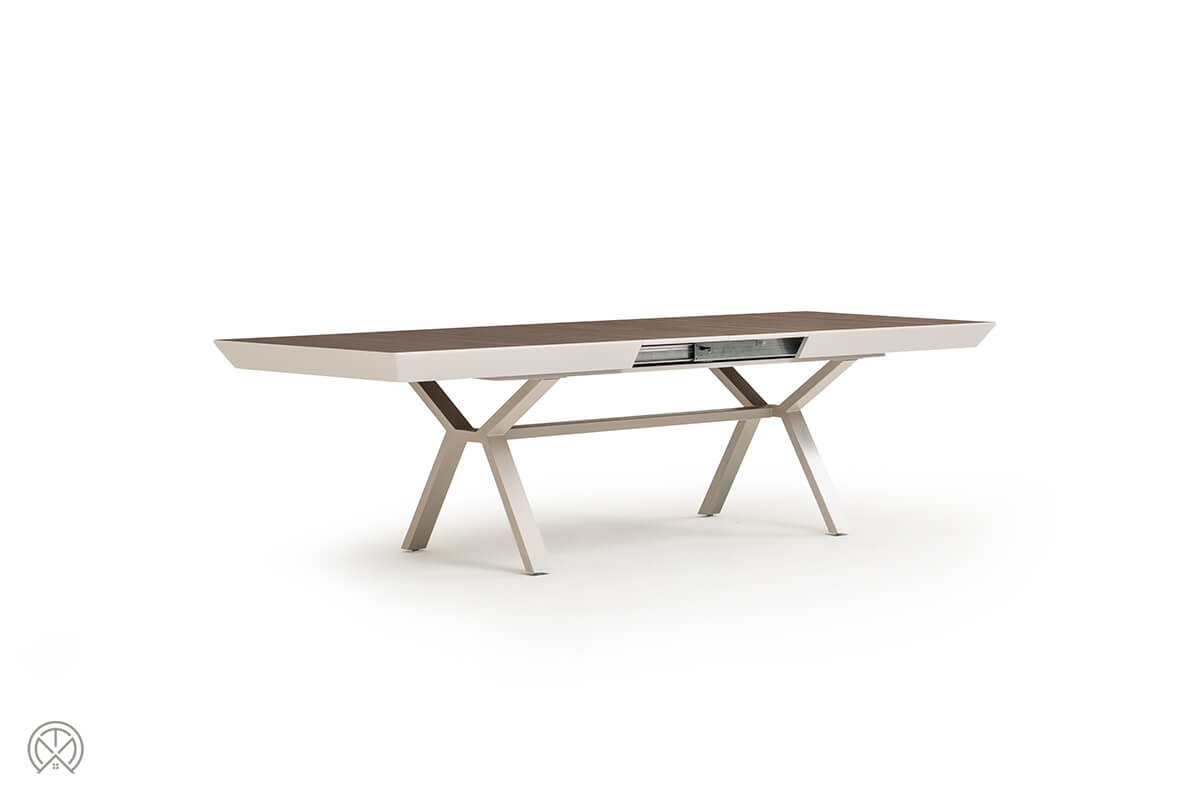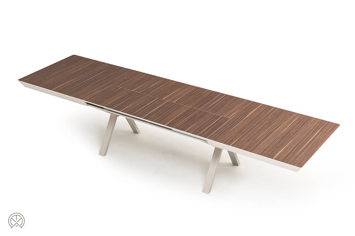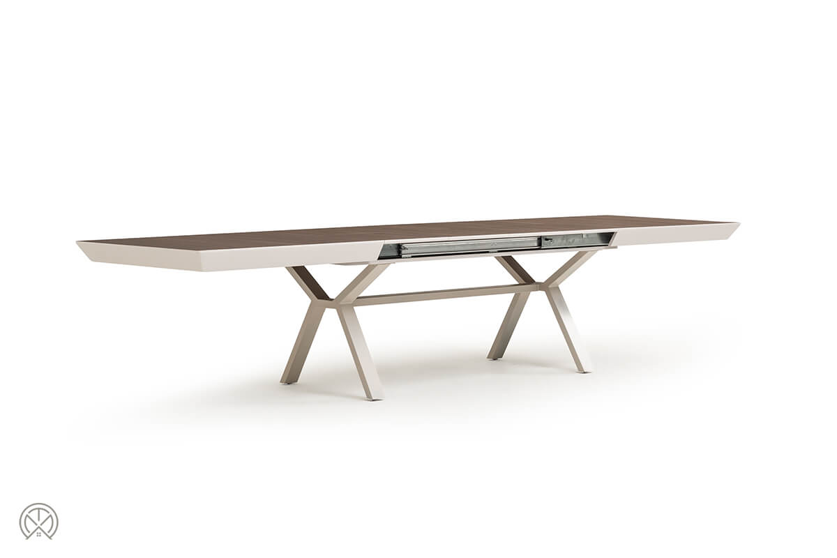 Dieser Mechanismus macht den Hummer zu einem extrem praktischen ausziehbaren Esstisch. Sie können den Tisch je nach Bedarf stufenweise von seiner kompakten Größe von 206 cm auf 246 cm, 286 cm, 326 cm oder bis zur beeindruckenden Maximallänge von 366 cm erweitern.