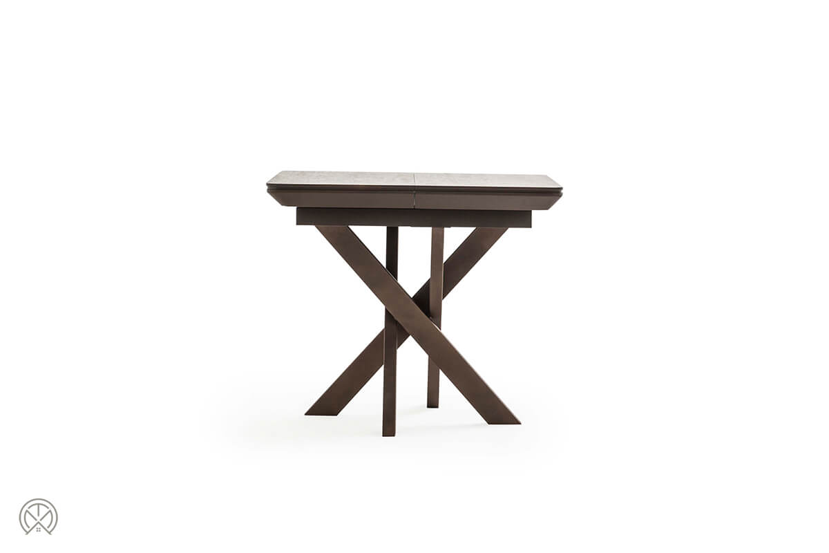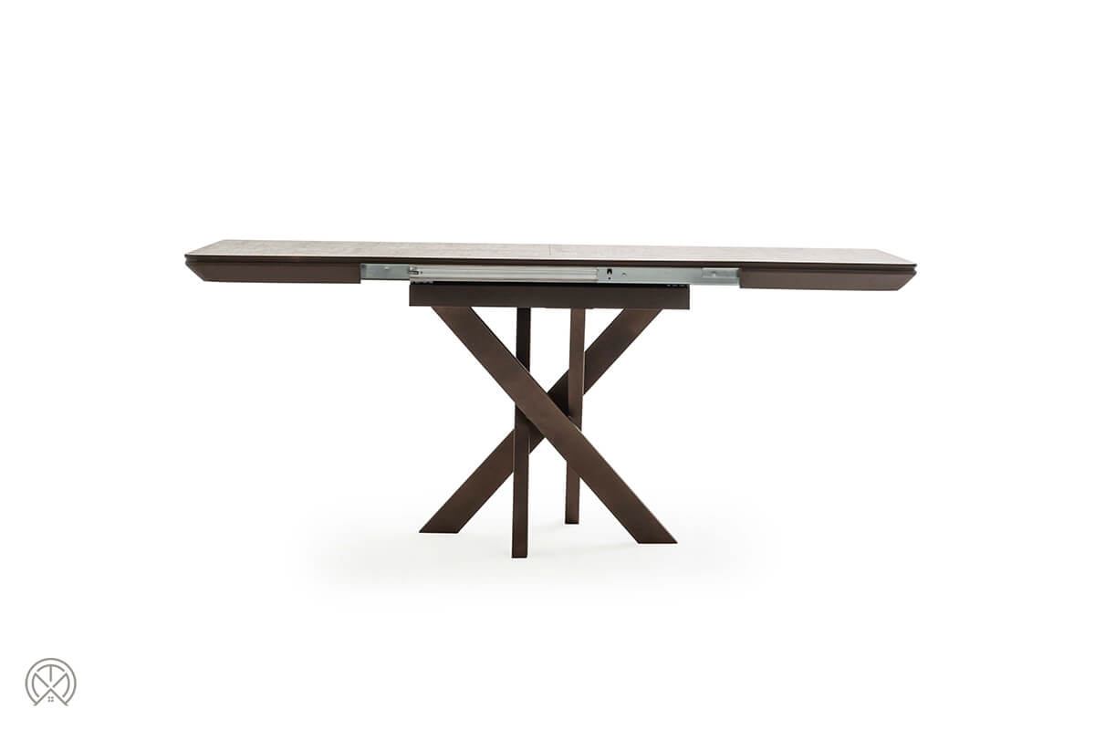 Der Grande Ausziehbarer Esstisch quadratisch ist die ideale Lösung für Räume, in denen Flexibilität und Design gleichermaßen gefragt sind. Er kombiniert den kompakten Charme eines quadratischen Tisches mit der Funktionalität eines großen Esstisches. Das Design besticht durch den eleganten Kontrast zwischen der hellen Tischplatte in Stein-Optik und dem markanten, dunklen X-Gestell aus Holz.