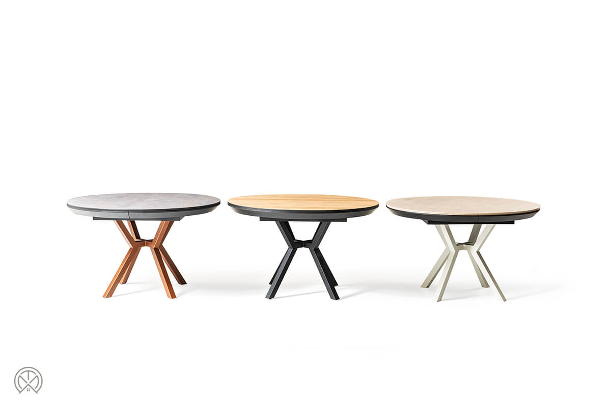 Das Besondere am Marin ist seine Wandelbarkeit. Das stabile, zentrale X-Gestell aus Metall sorgt nicht nur für einen modernen Look, sondern auch für maximale Beinfreiheit an allen Plätzen. Wählen Sie den Stil, der zu Ihnen passt: