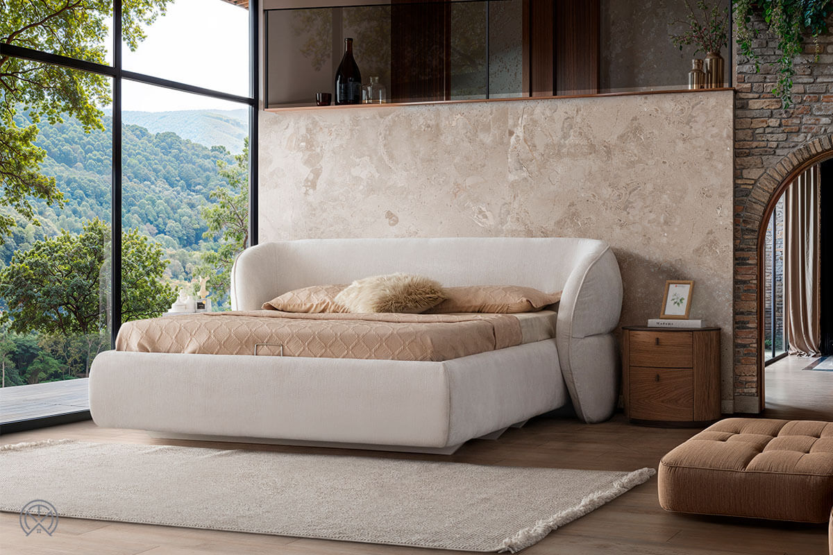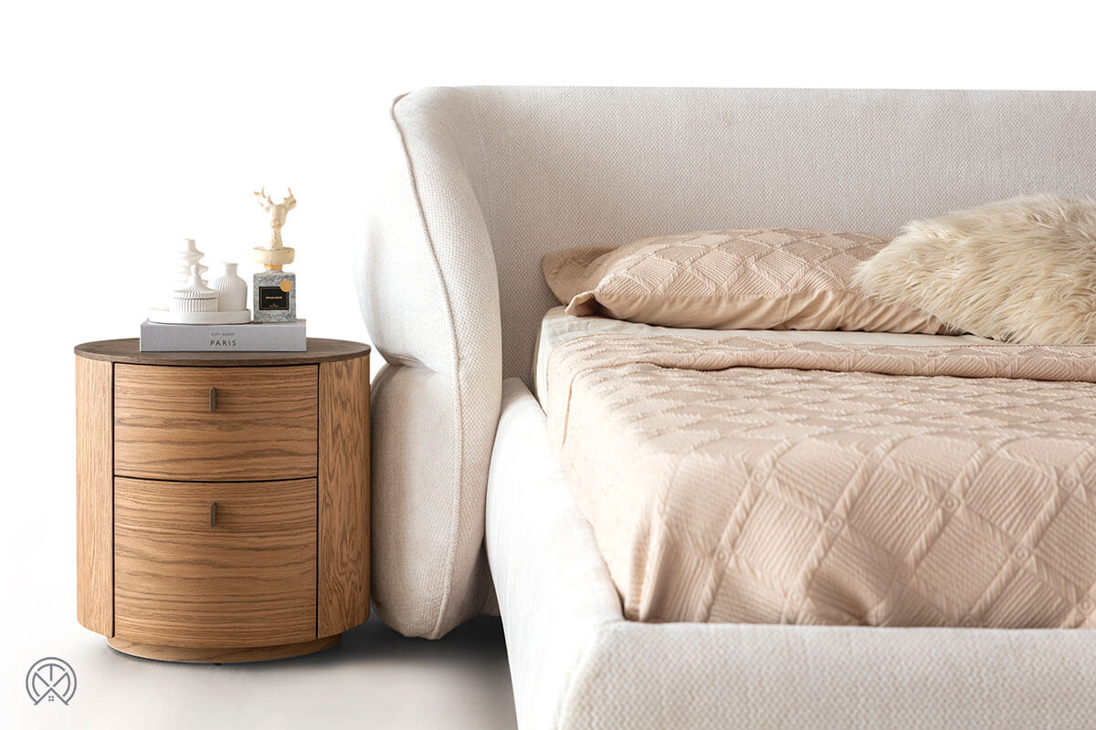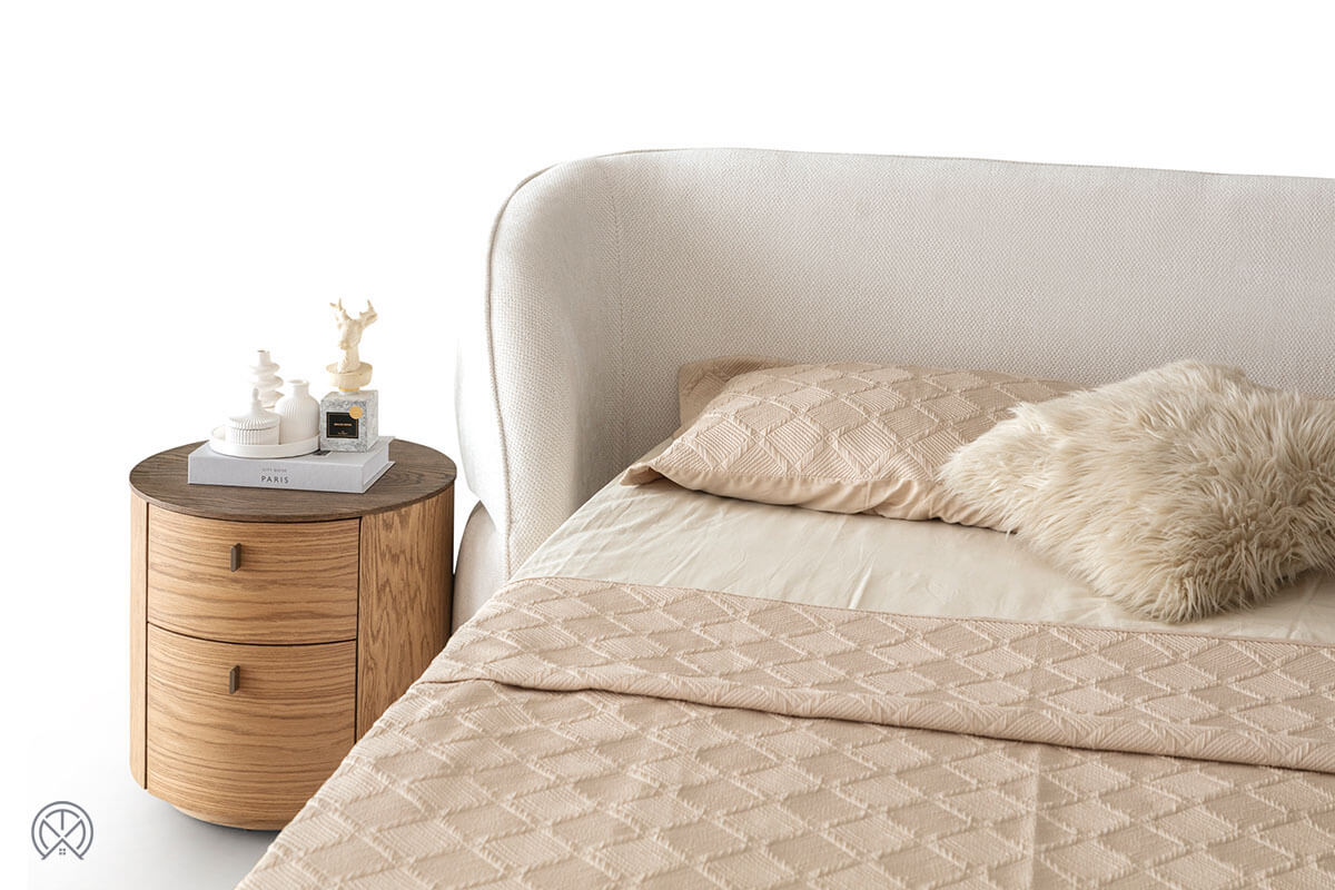 Das weich strukturierte Kopfteil schafft beim Lesen oder Ausruhen im Bett eine bequeme Anlehnfläche. Mit seiner eleganten Form wird es zum Mittelpunkt Ihres Zimmers.